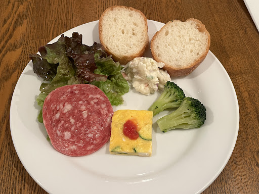 コーヒーはネスカフェのコーヒーマシーンで淹れていたので、ちょっと心配でしたが、エスプレッソ風に泡立っていてなかなかの苦味で以外にも美味しかった。