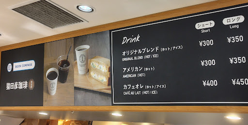 Compact, wood-lined shop selling craft coffee drinks, sandwiches, travel supplies & gifts.