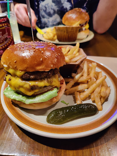 The easy to understand menu includes English and has a great selection of burgers and toppings to mix and match. There's also other food and interesting sides, regularly changing specials, and a choice of drinks including beer, harder alcohol, shakes and home made cola and ginger ale. Ask the staff for recommendations.