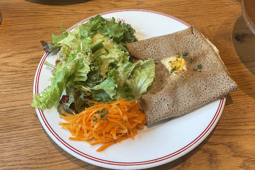 La galette était n’était vraiment pas bonne. Le fromage était à peine discernable, le jambon épais et pas bon, l’œuf beaucoup trop cuit. La galette avait clairement été cuite au four, asséchant le tout jusqu’à en brûler les coins.