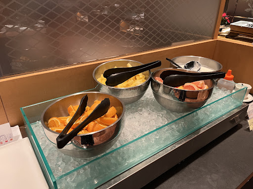 ディナービュッフェ利用。 デニムとスニーカーの方も居たのでビュッフェならカジュアルな服装でも良いのかも。 お料理の品数が少なめ。 【※食材の入荷状況によりメニュー内容が異なる場合がございます。】が本当に異なっていて、メニューとして記載されてるものの半分という感じだった。 中華の点心はフカヒレ餃子(豚脂が多い)だけ…。 限られた食材を工夫して数を増やした感じ。 シーフードの質が低め、中には冷凍庫臭もあったので提供前にスタッフでチェックして欲しいと思った。 ローストビーフのお肉は美味しくて良かったが、ソースがお醤油系でしょっぱ過ぎてお肉の味が分からなくなったし、添えてあるマッシュドポテトはお湯で作る粉末系の味だった。 オーブン料理のラザニアが味があったけど、その他のパスタやグラタンはコクや味が無かった。 お寿司が寿司桶に入って置いてあったが、ネタのレベルはお買い得価格(悪い意味で)のお刺身で、鮪、サーモン、海老、穴子、烏賊のみ…シャリはギュウギュウにたっぷりの量で握ってあったので、数個食べたら胃がパツパツになった。 シャリのお米は美味しかった。 ドリンクコーナーはファミレスにあるものと同じで色々選べたが糖類ゼロは無かった。 マシーンのミルクは粉末ミルク。 デザートはやはり工夫してあるけどいまいち、数も少なく、アイスクリームもシャーベットも無い。 3cm四方の苺のショートケーキがあった。 あれを切れる技が凄い、ちゃんとショートケーキだった。 ビュッフェ開始からお料理が次々に補充される感じはしなかったけど、終わり近くに来る人はどうなるのか気になった。 バッシングは早かったけど、お下げします、こちらよろしいですか?等を言う方と、突然横にサッと来てパッと持っていく脅かし系の方と2通り。 ナイフフォークを両手でバラバラと握って持っていこうとして落として集めて、ついでにカトラリーレスト(箸置き)まで持っていくので、驚いた。 そんなに慌てる事も無いと思うし、一応ホテルのビュッフェだから、ゆったりとした所作でお願いしたい。