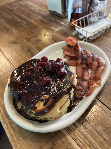 It's been along time since I've had brunch here in Japan, and I couldn't was opportunity to have a westernize meal while the day was young and this restaurant was open. It was really hard to make up my mind because everything is delicious, but I selected the chocolate and cherry pancakes recommended by the server. I felt like I needed to meet so I got some bacon and when they both came out was very impressed with how everything looked on the plate. You have to remember this isn't like IHOP or any of these gigantic breakfast spots in the west and the portioning was just right. The flavors of the chocolate and cherry were heavenly and the pancakes were super fluffy. Now when it comes down to bacon, it was just a little different, delicious but different. I wish this place was closer to me because I would come here every day to study and...