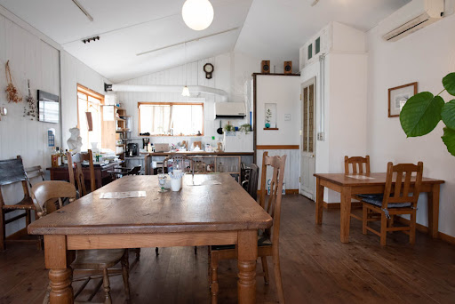 白基調の明るい店内の至る所に白縁の写真が飾ってあり、オーナー提供画像からも分かる通り店主の方は銀塩写真が好きなのでしょう。店内にはFM2とS3らしきフィルムカメラが2台飾ってあります。 建物の外観は木工工場で、まさかここがカフェとは夢にも思わないといった雰囲気ですが、建物を正面に見た右側に小洒落た洋風のドアがあり、これを開けると2階へ続く階段があります。 階段を登り切ったところにドアが2枚あり、階段の正面はお手洗い、左側のガラス張りのドアが店内に続きます。 店内のBGMにはクラシックが流れていますが、シューベルトが流れたりベートーベンが流れたりと、特に作曲者や演奏者にこだわりはないようです。店内にはアップライトピアノがあるので、ピアノ曲に絞っても良いのではないかと思いました。 料理の提供速度は普通ですが、店内とキッチンが同じ空間なので今作っているという音が聴こえるため、あまり気になりませんでした。 頼んだ料理のナポリタンは、玉ねぎ、ピーマン、薄切りソーセージのシンプルなものですが、そのままで十分おいしいと感じました。粉チーズとタバスコが用意されますので、お好みでかけると良いと思います。 コーヒーは注文のたびに豆を挽いて淹れてくれるようで、しっかりと表面に微細な泡の立ったものが出てきます。