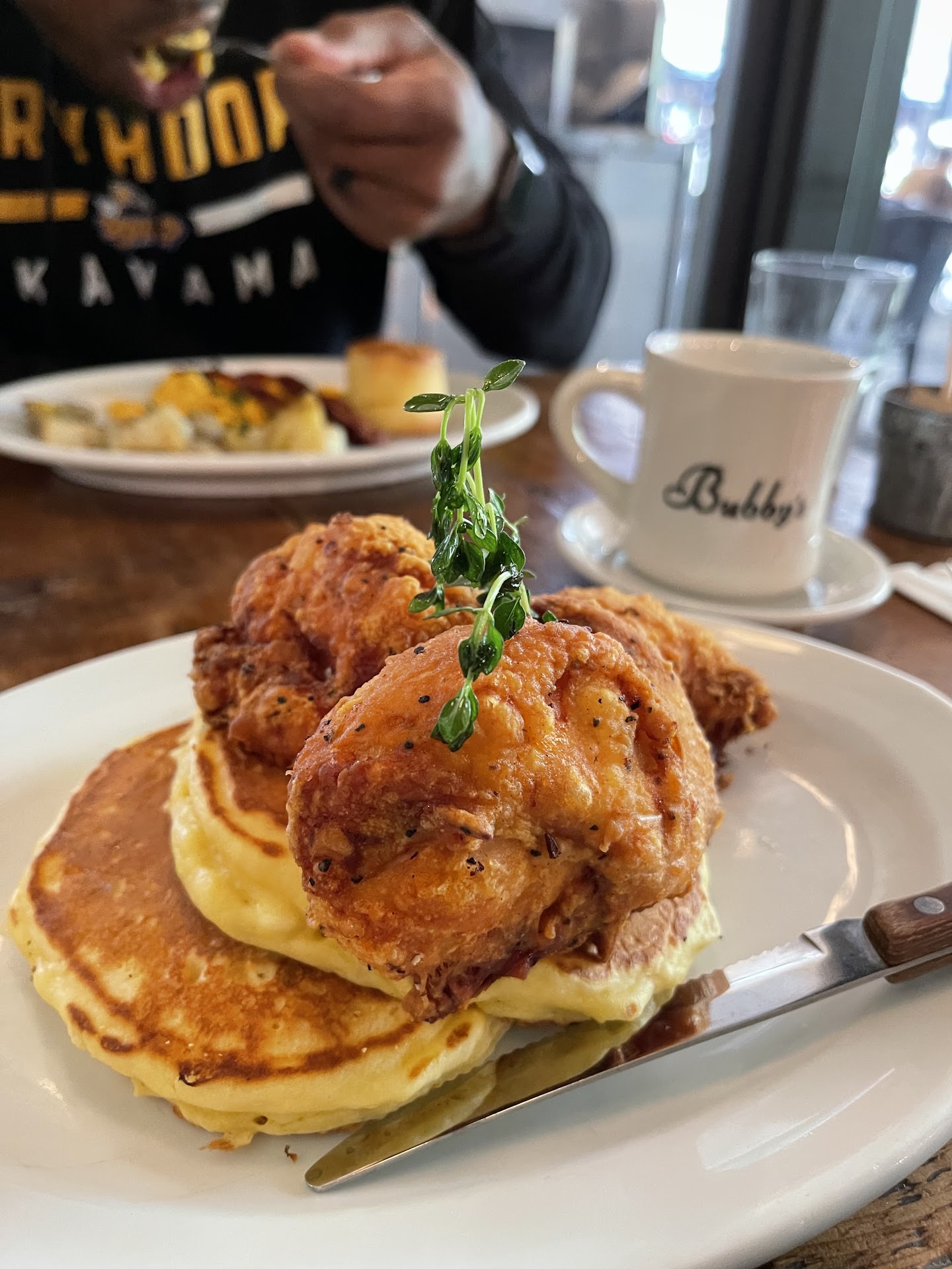Our first vist was on a Sunday. We wanted to go for a nice Brunch, so we walked through Ark Hills and discovered "Bubby’s Ark Hills". From outside it seemed to be a good place. We asked the waiter if it would be possible to sit outside. We had than to choose our own space outside. Nearly 20 mins after we had received the menu we were finally adressed again if we would be ready to order. We ordered to large breakfast including coffee, scrembeled egg, bacon, sausagge and pancakes. For this we waited 30 mins(coffee came after 7 min). In response to my question after 25min: "Why does it takes so long?" The waiter just said that we have to wait till its ready. It would simple be like that. And he turned and walked away. Breakfast came and was good quality. I have nothing to critisice. But we had finised coffee alreay and wanted to order a second one but the waiter was dissapered and nobody else showed up again. As the check! is here they are fast! was on the table we stood up and paid.