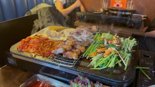 ▼詳細 *️⃣日替わりおかず3品 ・キムチ ・レンコンのきんぴら ・オムクポックム 本当にちょっとずつです笑 *️⃣サンチュ 包み野菜の定番 無くなったらおかわりもらえます *️⃣焼きキムチ お肉と一緒に店員さんが焼いてくれます *️⃣ニラキムチ お肉と一緒に店員さんが焼いてくれます *️⃣豆腐 お肉と一緒に店員さんが焼いてくれます *️⃣ネギサラダ お肉と一緒に店員さんが焼いてくれます *️⃣特製マヨご飯 濃厚マヨネーズにとびこが乗ってて ご飯の中にはバターが入っています よく混ぜて食べるんですが、もう背徳感MAXです笑 そして後々このご飯が非常にヘビーになってきます *️⃣1品料理 ・ビビン冷麺 ・ヤンニョムチキン(追加料金:+¥300) 冷麺は麺が長いのでハサミ✂️でチョキチョキ してから食べます 結構あっさりめな味に感じました ヤンニョムチキンはボリューム満点‼️ むしろ多すぎるくらい😅 かなり大きめのチキンが8つくらいあった記憶 大食い女子2人でもこれだけは最後まで残りました🙏 でもめっちゃ美味しい❤️ *️⃣お肉 ・極上ボーンサムギョプ ・極上モクサル の2つを選択しました お肉は店員さんが焼いてくれるんですが 焼き上がるまでに30分以上かかって それまでに1品料理などが出てくるので かなりお腹満腹の状態で食べる事になりました💦 完全に1品料理の選択をミスった感😓 でもお肉はどっちも美味しかったです‼️ 空腹の状態で食べたかったー😭 今回はコースで注文しましたが、単品の注文も可能でメニューはかなり豊富です👍 次に行く機会があったらコースにはないお料理も食べてみたい🎵