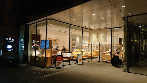 さすが店構えから明るくとても綺麗で、入口近くは、文明堂と言えばカステラ等のお菓子の物販店となっていました♪
