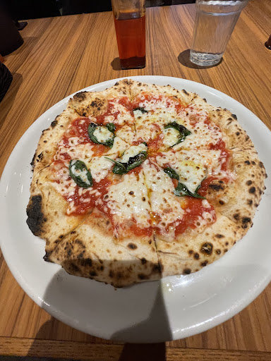 Relaxed restaurant with a cozy ambiance, offering pizzas, pasta & other Mediterranean dishes.