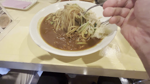 2024年6月追記 カレー大750円。 炒めパスタ屋さんでカレー頼むのもどうかと思うが、カレーをトッピングとして扱うので、それなりに作り込んでいるのだろうと試してみた。ご飯はジャーに入れてあるのではなく、チキンライス用におにぎり状にして保温してあるもののようで、なんともゴワゴワ感は否めない。ルーは思いの外ちゃんとしていて、タマネギが形がなくなるまで炒めて煮込んであるように思った。肉は欠片なので、鶏か豚か牛かわからず仕舞い。でもまあまあ美味くて早いなので、全然悪くない。