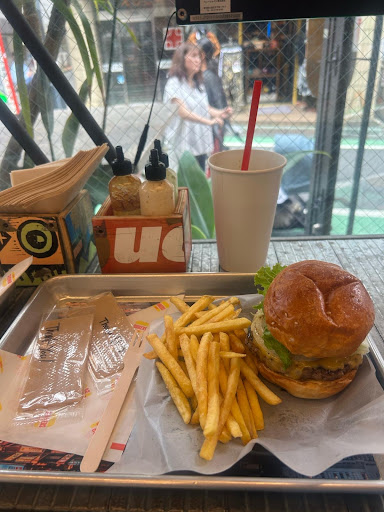The flavor of the meat is top notch and juicy. I had a double cheeseburger, and liberally experimented with the variety of provided sauces. Delicious. I only drop one star because the size of the burger was a little small for the price (~„1400 for a burger/fries/drink combo) and I am a glutton.