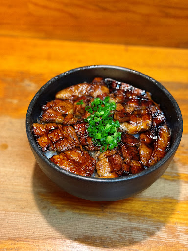 You order via a vending machine outside, and the menu is essentially one item: buta-don (pork rice bowl). Be prepared for the delicious, smoky aroma of the barbecued pork to linger on your clothes. The pork itself is perfectly cooked and beautifully arranged over the rice, generously coated in the shop's likely secret sweet tare sauce. I ordered the large for JPY 1090 and found the portion satisfying. The rice can be a bit dry, but the accompanying sweet tare allows you to easily customize it to your preference. I highly recommend adding an egg for the full experience.