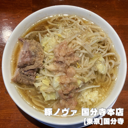 Pork Nova Kokubunji Honten @ Kokubunji Hi, I'm Sapio.  From ðŠTokorozawa "D-Men"!G-style ramen with a delicious pork feel and a crisp, sour aftertaste of soy sauce!  ̄ ̄ ̄ ̄ ̄ ̄ ̄ ̄ ̄ ̄ ̄ ̄ ̄ ̄ [Score] 85 points â4.0 [Access] Kokubunji Station (487m) [Order Menu] Small amount of ramen (250g of noodles) 930 yen The amount of noodle is more than the average ramen even if it is a little less. [Lineup / System] When opening, Ticket system [Ingredients] Pork bone broth, pork chashu pork, garlic, cabbage, bean sprouts, back fat, homemade Chinese noodles. [Taste] Pork bone broth, shoyu, rich, Jiro-style ramen