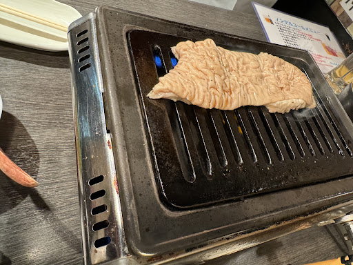 We chanced upon this as we were walking to our Airbnb and were dead tired from our flight to Japan. From the exterior it looks like an affordable grilled meat place. We decided to head in to try despite not knowing any Japanese. The servers were attentive and helped us to hang our clothes in a cupboard to prevent it from smelling. Was asked if I could speak Japanese and told him I couldn't so he gave me an English menu. This place is known for it's pork items, especially it's belly, sirloin and tongue. Yes, "tongue with salt". We noticed that it started filling up after 7, filled with locals as I hardly saw any foreigners. The meat quality was of high quality and serving size was just right for 5 adults. We spent about 8000 yen and were satisfied. Only downside is that the table opposite us was smoking but I guess it's common in these kinds of establishments. Would definitely visit this...