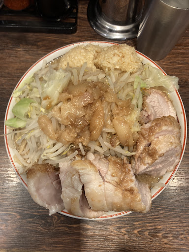 Read more二郎系のラーメンを誰でも気軽に注文できるお店です。初来店でもスタッフさんの接客がとても丁寧なので安心できます。メニューも細かく設定されており、そのときどきで細かく調整できるのがいいですね。豚が肉肉しく豚肉特有の甘さを感じます。口の中でとろけるように崩れていきます。 初来店時は「小ぶた(麺250g)・ニンニク少し・野菜(450g)・カラメ」をいただきました。2回目は「ミニぶた(麺125g)・野菜(450g)・アブラマシマシ・カラメ」をいただきました。次回はミニブタ野菜マシマシいってみようかとおもいます。味付けも濃すぎず食べやす方です。 追記 「ミニぶた(麺125g)・ニンニク少し・野菜(450g)・アブラ・カラメ+つけ麺変更」をいただきました。初めてつけ麺変更をしました。麺が冷たく締めてあるの最初は食べやすいです。後半は油の多いスープがぬるくなるので注意が必要です。麺が125gで野菜を増やしていますが物足りない感じがしますがお店を出た後は丁度いい感じになります。 追記 今回は「小ラーメン(麺250g)・ニンニク少し・野菜マシマシ(600g)・カラメ」をいただきました。 初めて野菜マシマシを注文してみました。丼に高く盛られた野菜は圧巻です。取り皿をもらえるのはとてもGOODです。 追記 アプリで「肉あぶら」がおススメされていたので初めて注文しました。そのため今回は「小ラーメン・ニンニク少し・野菜・カラメ」でいただきました。肉あぶらとても美味しいです。美味しいですが不健康まっしぐらな感じでした。肉あぶらを注文するときは豚2枚で十分です。 追記 久しぶりの豚山さんです。少し陽気のいい日だったので今回はミニぶた(麺125g・ニンニク少し・野菜マシマシ(600g)・アブラ・カラメ・トッピング煮卵)つけ麺変更をいただきました。野菜マシマシにしたのでつけ汁はスープの上まで野菜が盛られていて一杯のラーメンのように見えます。以前は麺250gの小に野菜450gにしたと...