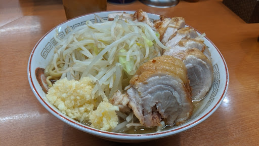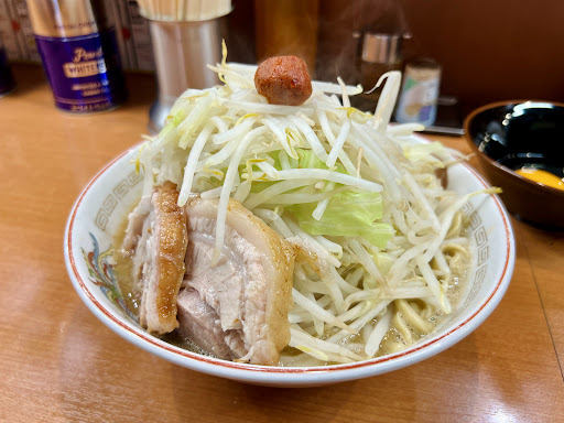 Read moreFirst of all, the employees only speak japanese, so if you can't, you have to use a translater. I ordered the large size(there is small, large and extra large) extra pork(gives 5 slices not 2. +200yen) ramen. The amount of noodle was amazing, and so was the amount of bean sprouts. The pork was very thick and satisfying. I would say that some people could consider the menu too greasy and salty, but for me, it was just amazing. The price was 1280 yen, which is a little expensive for regular ramen, put considering how much topping they serve, I think it was cheaper than expected. Would highly recommend ordering the small size with extra topping because I had a hard time finishing the large size due to the sheer quantity...