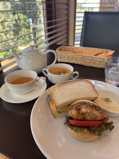Read more水曜12時頃来店、地元密着アットホームなカフェという感じです。 席は基本2人テーブル席、広い窓に囲まれているけど周りからはあまり見えないようになっていて1人でもゆっくりできる雰囲気。窓際の席は陽当たり良好、天井が高く開放感溢れてて個人的に冬場最高の特等席です。 ランチメニューは厚焼き卵サンド+唐揚げ系サンドパン+スープのセットがいくつかあり、1100円でかなりのボリューム頂けます。ルイボスティー等やスイーツもいくつかあり、水出しコーヒーゼリー(生クリーム&カラメルシロップつき)がめちゃ絶品で感動..!(写真撮りそびれた) お店からの紹介通り、特に子育て中のママさんには1人だけの静かでリラックスできる空間で良いだろうなと思いました。 隣のアンネアンヌさんと共有の駐車場が5台分くらいあって、大体ガラ空きなので大通りから走って見逃しさえ...