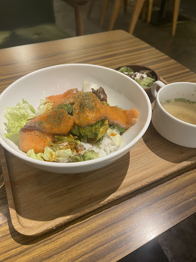 Also my salmon avocado rice has lettuce in it, so the salad on the side was rather useless.