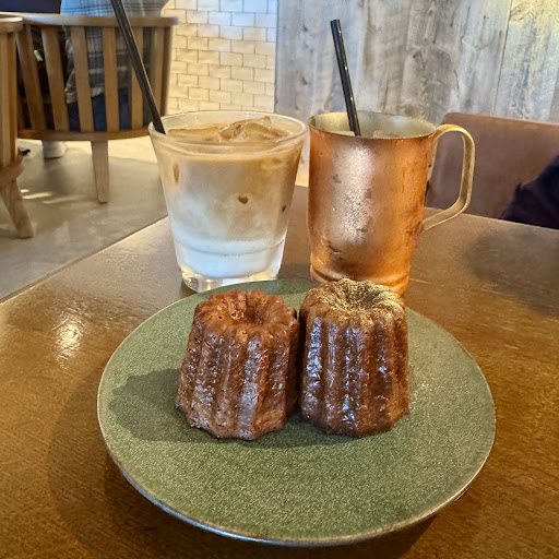 Since I had just eaten lunch, I ordered some sweets and drinks: ・Canelé Tasting Set – Classic & Jasmine Canelé – ¥750 ・Iced Café Latte – ¥650 ・Prana Chai Tea Latte – ¥680