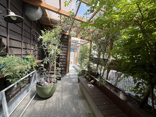 Terrace seating is also available, allowing guests to enjoy their food and drinks in an open-air setting on nice days. A notable feature is the many small animal figurines scattered among the plants around the terrace seating. Finding these cute figurines adds a new element of enjoyment to your cafe time. Both adults and children can experience the excitement of a treasure hunt.