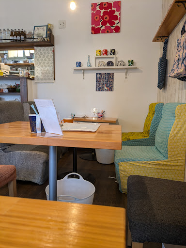 Read more駅から少し歩いたところにあるこじんまりとしたカフェ。 午後の予定まで30分ほど時間があり、適当な時間潰しの場所が無かったので、駅から一番近くレビュー評価の良いこちらにお邪魔した。 12時頃だったので小さい店内はほぼ満席(2人組+1人+1人)で、4人席が空いているのみ。4人席に座ろうとすると、1人なら窓際のカウンターに座ってくださいと言われた。(私の後にも数人、1人のお客さんが来たが追い返されていた) ランチを食べる時間は無いと思い、ショーケースにあったヨーグルトケーキと紅茶を頼んだ。 店員はまったりとしたおばちゃん1人で、注文されたものを順番に作っているらしい。皆大したメニューを頼んでいる様子はないが、一つ一つの注文をこなすのにかなり時間がかかっているよう。4番目くらいだった私の番が来たのは、来店から20分ほど経っていた。 ケーキを急いで頬張るが、可もなく不可もなくといった感じ。 最後の二口を残す頃に紅茶が運ばれてきた。待ってましたと飲んだのだが、水は水道水を使っているのか?香りはまぁまぁ良いが、水道水のような変な味がして、ミルクでも誤魔化しきれず、不味いので残し、時間もないのでいそいそと退店した。