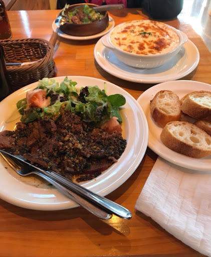 薄切りの赤身スライス肉には、何やら香味野菜バターソースが盛られている。これが美味い!肉は口コミほど柔らかくはないが硬い訳でもない。プレートとして提供されるが、出来ればステーキ丼にして頂きガツガツ食べたい味付け。因みにテイクアウトだとステーキ丼状態で供されるらしい。でもソースに油分が多く、丼にするのはちょっと無謀かも知れない。男ウケする味付けだが、隣席のお嬢さんにもウケている様子だ。