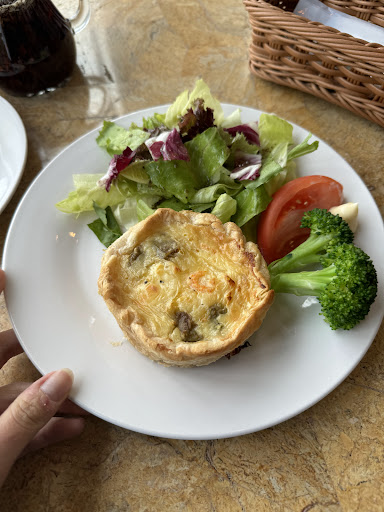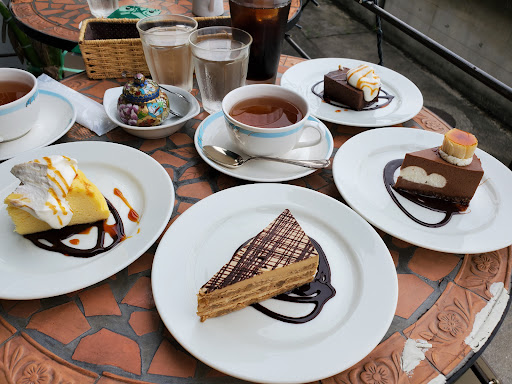 Mediterranean mains plus cakes & coffee at a cafe with a terrace overlooking the Sumida River.