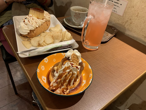Read moreMany people are saying foreign people aren't welcome here, but I'm super foreign, and I didn't feel unwelcome at all. Maybe it's something against the chinese/korean tourists? Frankly, they are not the best-behaved people in akihabara (those guys are super loud, and their manners in general need a lot of improvement...), so I could understand that I guess. The cheese hot-dog was like 70% melted cheese. I have a normal stomach I guess, but I couldn't eat it all, I was too full, and left a bite or two. They have an English menu outside, but inside it's all in Japanese. They got my drink wrong... but it was good anyway so I didn't care, they probably would have changed it if I asked. The food takes a couple of minutes to come, but not unusually long. The decoration/style is nice, kinda old Japanese style? with very old furniture, and cardboard "don't smoke" signs. The only thing I could was wasn't so nice, was that the 2F is for smoking, and it's very large, while the 1F, for non-smokers, has only like 10 seats (one sofa + single counter seats). So, it's smoking friendly. But the food was pretty nice, I might go again. Not many good cafes in akihabara, this place...