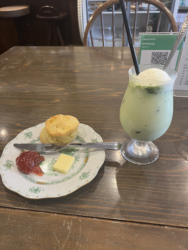 思わず人生初レビュー! レトロでオシャレなお店!外装も綺麗で、外に飾ってあった食器たち、それから抹茶ミルクフロートの文字に惹かれて店内へと誘われました笑 お店の中は外観に負けずオシャレで清潔感があり、とても居心地が良かったです!BGMは運が良かったのかジャズかクラシックで選ばせて頂きました!自分はクラシックにしました〜 ↑これまたセンスがいい! とても落ち着いた雰囲気があって心地よく、お店のお姉さんも明るく、気さくで話しやすかったです! コーヒーゼリーをオススメ頂き、すごくすごく魅力的だったのですが、もともと気になっていた抹茶ミルクフロートを注文!とても甘くて抹茶もちょうど良い濃さですごく美味しかった😋 一緒に本日のスコーンも注文してこれもまた美味しい!私が行った時はプレーンでした〜! お話も弾み、心地よい時間を過ごせて大満足! おかげでリラックスして疲れも取れた!これで今週はまた頑張れる! 電車を乗り継いででもまた来たいと思えました また行きたいな〜(๑⃙⃘´༥`๑⃙⃘) その時は是非コーヒーゼリーを✨
