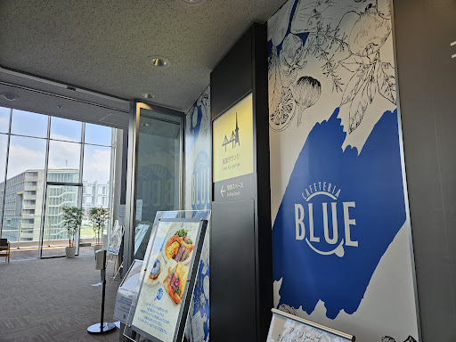 日本科学未来7階展望ラウンジ内のカフェ「CAFETERIABLUE」で主婦お茶会をしました。 カフェ利用は、入館料の支払いが必要がありません。エレベーターなどで7Fにあがると店内に入れます。細長いカフェスペースを進むと、注文カウンターがありますよ。