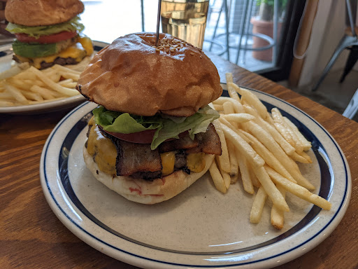 オープン直後に訪れて以来の2度目の利用。以前は気づいていないだけかもしれないが、①ランチタイムはソフトドリンク¥150とお得に②サイド含めてメニューが充実③アルコールメニューも充実、と特にランチタイムに利用しやすくなったと思う。 今回はベーコンエッグバーガーをオーダーした。前回と異なり紙に包んでかぶりついたら以前より美味しく感じた。バンズ、野菜、肉を一体として味わうのがコツのようだ。店内に食べ方指南があってもいいと思った。 この界隈でのハンバーガーあるいは一食としてはやや高めなのと、やはりポテトがありきたりなので★4は変わらず。 ベーコンチーズバーガーを注文。厚切りで香ばしいベーコンとチーズに圧倒され、ボリュームも十分であった。肉を塩味で味わうアメリカンなハンバーガーという印象。 マイナス点を挙げるとすれば、①付け合わせのポテトがありきたりであること ②全体的に値段が高いこと ③ベーコン、パティ、チーズ等の組み合わせはあるものの塩味ベースの素直な味付けが多く単調に感じられ、何度も訪れるためにはガラッと味の異なる、例えばソースを使ったハンバーガーも欲しいこと等が挙げられる。 注文を受けてから調理するため時間がかかることを覚悟する必要がある。また、感染防止のため店内着席数が少ない...