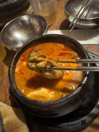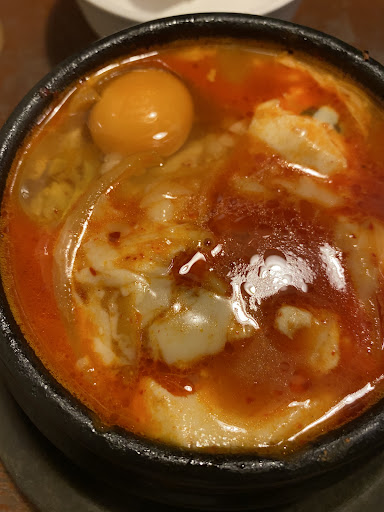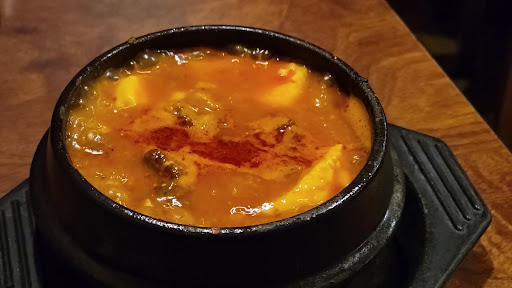 Diners choose a preferred spice level for sundubu tofu stew at this Korean spot popular for lunch.