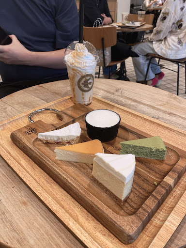 I ordered the assortment of 5 cheesecakes — the matcha and original were absolutely amazing: rich, smooth, and full of flavour. The cheese yogurt one was more average, but it worked well as a palette cleanser. I also tried the baked cheesecake drink, which was flavourful without being too over-the-top. Perfect spot for a quick break and a sweet treat. Would...