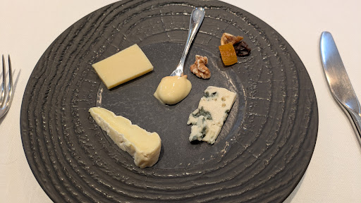 Just before dessert, a staff member brought over a cheese cart and offered us a plate (for an additional charge). I’m not sure if this was offered to everyone, or only to French guests living in Japan — perhaps knowing how special these cheeses are when you miss them in daily life. Either way, I couldn't resist and asked for a plate with a selection of all four.