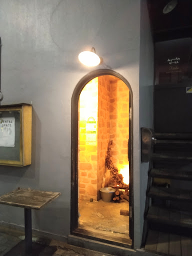 店内は、ウッディーな装いで、山小屋風にデコレート?されており、階段下の小空間に置いてある黒板に、チョーク書きのメニューがあります。
