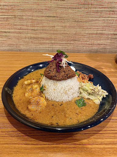 レモンクリームを使用したエビカレーはスッキリとしてながらもスパイス感とクリーミーさが上手く混じり合った絶品エビカレー。 海老もぷりぷりで食感も良く、スパイスの香りも存分に楽しめる。