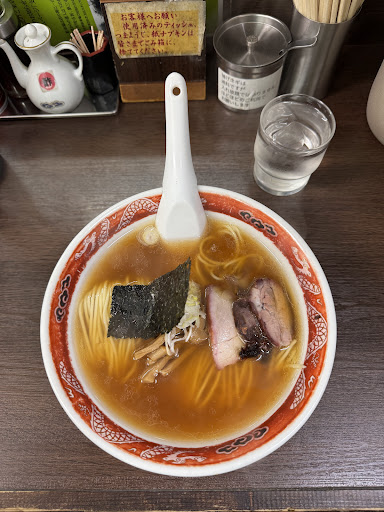 Ramen shop for soy sauce-based broths topped with sliced pork, fried wontons, or dumplings.