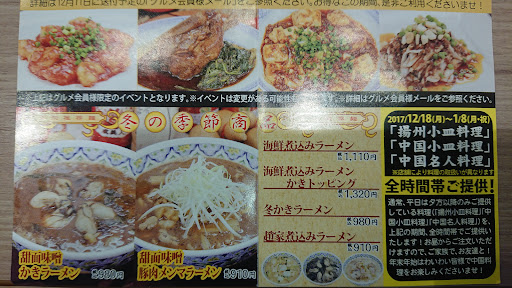 Read more9/13(金)夜。豚南ばん910円(税込) このほど復活したメニューらしく、内容をよく見もしないで注文。スープを一口飲むと酸味が! えー、酸味は今日はちょっとなー…と思いつつ食べ進んで行くと「ん? なにこれ? 美味しいんじゃない?」 美味しかったんですねー。で、辛いのが徐々に押し寄せてきた! 何か絶妙っての? 最後まで飽きずに平らげましたよw 後からメニューをよく見たら、「南アジアのスイートチリソースみたいなラーメン」だと。なるほど。是非、ご賞味あれ。 5/8(水)黒酢炒飯を注文。黒酢は独特の臭みが苦手だが、これは食べやすかった。もう少し香味野菜などで完全に臭みを消してくれたら完璧か。(1ヶ月前)焼きそばと炒飯を食べた。美味しかった!! 確実に腕のいい作り手がいる。焼きそばは、いわゆる揚州商人の焼きそばの味になっていた。それまでがひどかった。全く別物だった。これならまた行こうかなと思う。 (3ヵ月) 煮込みラーメンかきトッピング1340円とレタスチャーハン830円を食べた。気のせいか、美味しくなっている!! 作り手が変わったのか? 煮込みラーメンは細麺のみだが、スープにとろみがあり、味もしっかりしているので、細麺だと絡まりすぎてしつこくなる。具はとてもおいしいので、バランスを考えて中太麺以上にしたらどうかと思うが。