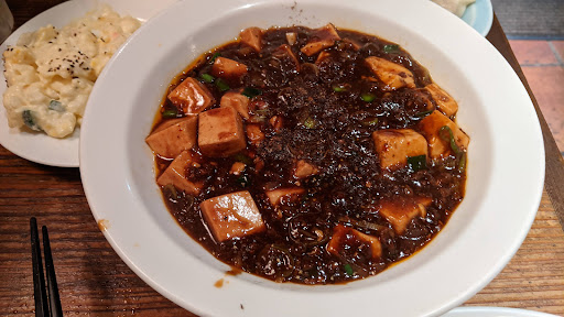 ▪️2人で行った時の王道オーダー 四川麻婆豆腐 餃子6個 蒸し鶏 汁無し坦々麺(小)に生卵1つトッピング