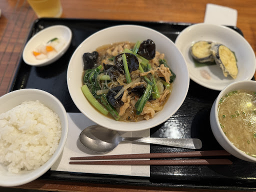 Yatsai is written as 'mesai' and is a Sichuan pickle🥬 On the small plate, there was fried eggplant with Sichuan pepper and salt. It was 1,100 yen (tax included) with rice, soup, and pickles.