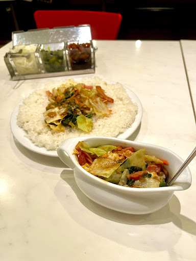 Unique curries in a vegetable-rich sauce served in a streamlined, informal space.