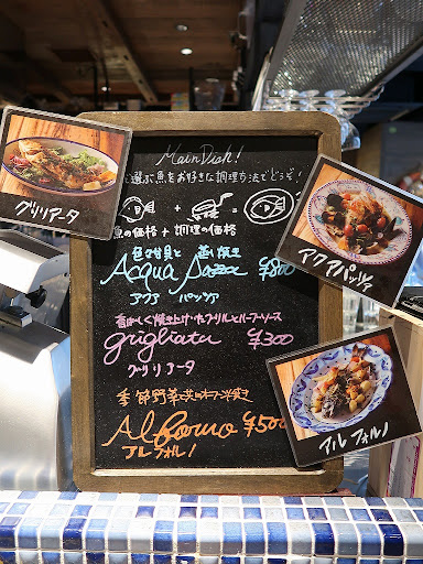 上野駅から徒歩1分程のビルの3階。 エレベーターを降りると、そこは「南イタリアの漁港の食堂」!! 店頭ではその日のおすすめの新鮮な魚介たちがお出迎え〜(・∀・)♪ 水槽で泳ぎ回る魚介たちも、好みの調理法でいただくことが出来ます。 広々とした店内はカジュアルなのに、めっちゃお洒落☆