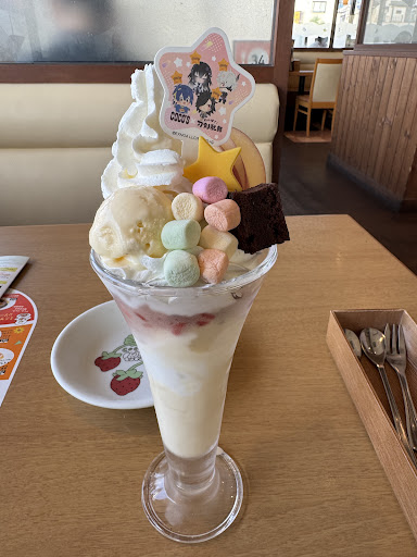 コラボやっていたので行きました。 いつもの包み焼きハンバーグを注文。 一緒にコラボパフェも食後に注文。