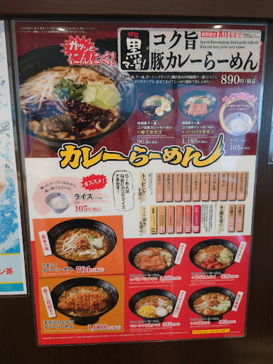 約3ヶ月ぶり23時5分来店、先客4、後客4、いつもは右側のカウンター席だけど左側の4人掛けソファー席へ。台湾カレーらーめん(896円)+ライス(105円)+旨辛にんにく(159円)+半熟タマゴ(73円)注文。檄辛ラー油と花椒の辛いスープ、甘辛の挽肉を混ぜると辛さとカレーのコクが上がります。麺を半分食べて旨辛にんにく(そのまま食べても旨い)と半熟タマゴで味変、味が少しまろやかに。初めは単に辛いけど食べていく内にクセになる味わいに納得。残したスープにライスで追い飯、完食完飲。水を3杯飲んで退店(辛かった!)ごちそうさまでした。