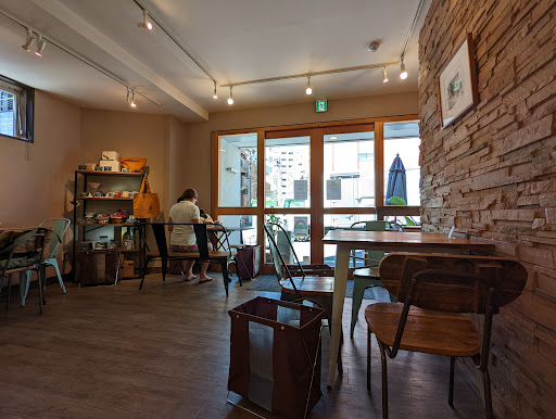 蔵前の住宅街にある小さなカフェです。席数は20席もなく、特に休日の昼下がりは全ての席が埋まってしまうことはよくありますが、各テーブルはそれぞれやや離れて配置されているため、他の客のお喋り音等の干渉が少ないです。店内のBGMも他のカフェと比較すると小さめであるからか、大きな声でお喋りすると割と響きます。そのためか客は勿論スタッフ間のコミュニケーション音も小さく、落ち着いてくつろぐことができます。 コーヒーの豆や淹れ方に非常に強いこだわりを感じます。味は、取り扱うコーヒー豆によって多少の差はあるものの、濃すぎず薄すぎず絶妙な濃さで、どちらかと言えば酸味を効かせたスッキリとした味わいになっています。その他のドリンクも扱っていますが、多彩な味のコーヒーを楽しむカフェだと思います。一方で食事は一部で難があります。味付けは申し分ないのですが、一部の料理が固くてナイフやフォークが通りにくく、噛むのに一苦労する場合があるのに注意が必要です。 入口には段差があり、扉は手動の引き戸形式です。そのため、車椅子等の障碍を持つ方は利用しづらいと感じるでしょう。