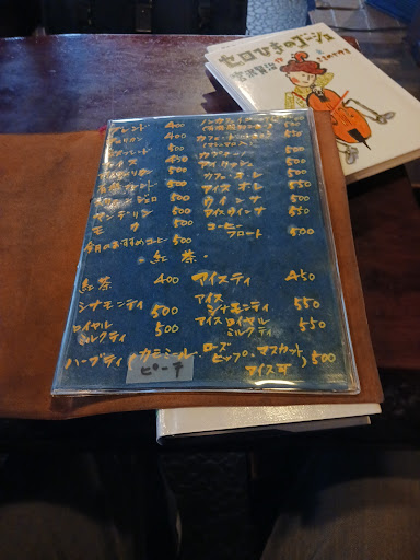 Kind of hard to judge from the layout, but about 30 seats. Soothing and conversational atmosphere is very old Japanese, maybe even Edo Jidai for the sunken hearth, though mostly it strikes me as early Meiji. Feels like the old couple has been running it for many years. Old jazz music, with this song being IDed as "Footprints" by Miles Davis. No Wi-Fi or charging. I ordered the set from the wall, though maybe it was in the menu on a later page.