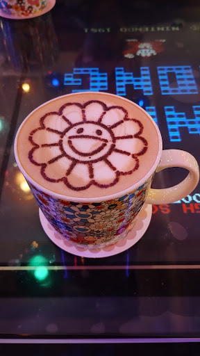 The space is filled with vibrant artwork, and the signature Flower character even shows up as adorable latte art, which honestly felt too cute to drink. The drinks and food were not only photogenic but also genuinely tasty.