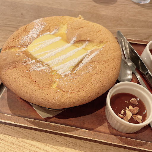 ・カステラパンケーキ 目玉商品 少し時間を頂きますとあるが少しではない 30分ほどかかる 30分が少しかという点では賛否は分かれるかもしれない 味は微妙 絶賛されるほどではない パンケーキのふわふわ感も特に感じず口に残る味がする パンケーキと言うよりシフォンケーキというレビューがあったがまさにそうでふわふわ=すかすか...