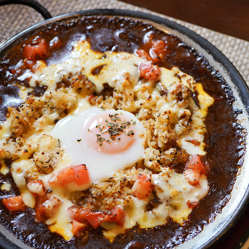1977年に現店主の母が喫茶店として創業し、店主が引き継いだタイミングでレストランとして営業を開始。 メニュー数もかなり豊富で、全てソースは自家製。 中でも特に人気が高いのが、半熟卵の焼きカレー。 パエリア風の器に入った熱々の焼きカレーは店内のいい香りの発信元となっている。