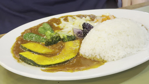 Upon entering, we noticed every nook and cranny was filled with vintage train memorabilia. A pair of young American parents were struggling with the vending machine used to place orders. There are just three booths and a small counter, so we were fortunate to ensnare the second booth decked out with authentic train seats. There was no picture menu, so we took our chances with our orders. My husband ordered the ¥1,300 Vegetable Curry, while I went for the ¥900 Shinkansen Curry with a ¥300 Hashed Potato.