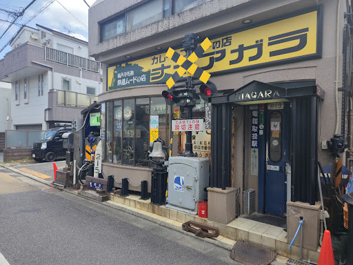 This compact spot caught my attention when I was watching a YouTube video about the fashionable Nakameguro neighborhood. The vlogger got caught in the rain and took what seemed like a long walk below the train tracks to get here. Sure enough, when my husband and I arrived in Nakameguro, it was raining, and we repeated the exact same walk we saw in the video. The cafe has been operating since 1963, and the first thing we noticed was the railway crossing signal in front.