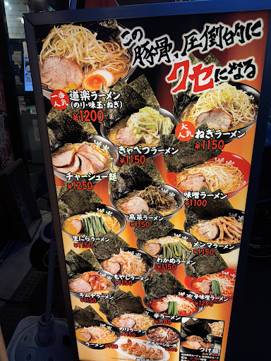 旗の台駅の東口より徒歩1分ほどのところにあるラーメン店です。商店街に位置し、周囲には多数の飲食店が立ち並び、またこの店は24時間営業であるため、朝~夕方の時間帯は非常に空いています(ランチタイムでも混雑することはあまりありません)。むしろ深夜の方が、仕事帰りに腹を満たす目的で利用する客でやや混雑するように見受けられます。 カウンター席のみであるため、ほとんどの客が1~2人での利用です。お喋りする客は少ないですが、特に深夜は大声且つ野卑な声でしゃべる客がいるため、場合によっては利用を避けた方がいいかもしれません。 入口脇にある券売機で食券をあらかじめ購入する必要があります。入口には段差がないため、車椅子等の障碍を持つ方や大きな荷物を持つ方でも気軽に利用できますが、店内の座席後ろの通路はかなり狭いです。